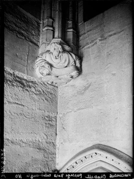 Sainte-Chapelle, intérieur, passage nord : culot de l'angle nord-ouest, sculpté d'un personnage