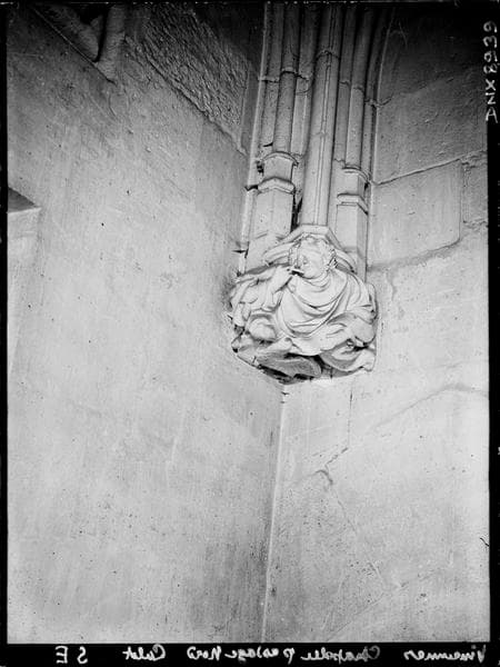 Sainte-Chapelle, intérieur, passage nord : culot de l'angle sud-est, sculpté d'un personnage