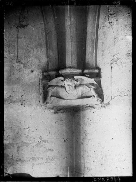 Donjon, intérieur, premier étage : culot sud-ouest sculpté d'un ange