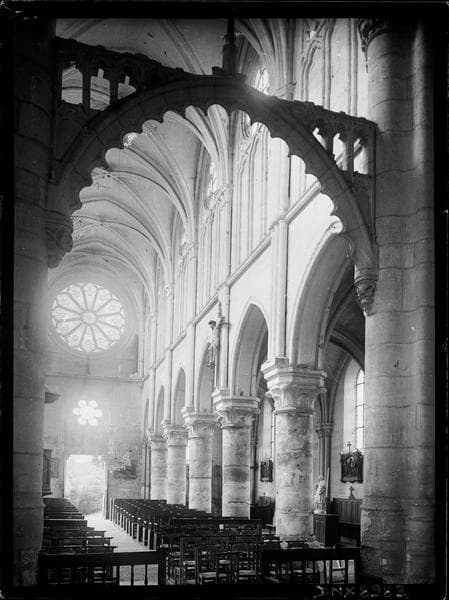 POP | Plateforme ouverte du patrimoineIntérieur : nef vue en diagonale vers le nord-ouest, arc triomphal ou poutre de gloire à la croisée du transept