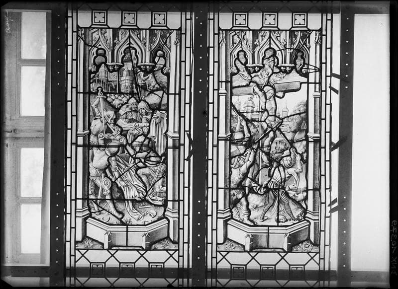 POP | Plateforme ouverte du patrimoineVitrail, scènes de la Passion : Soldats tirant au sort les vêtements du Christ et le Bon Larron