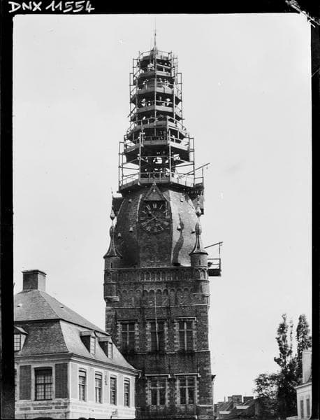 POP | Plateforme ouverte du patrimoineBeffroi côté sud : lanternons et flèche entourés d'un échafaudage
