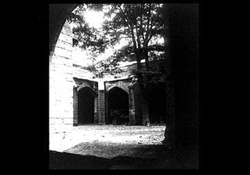 CLOITRE ; GALERIE ; ANGLE ; COUR ; ART GOTHIQUE ; ARBRE