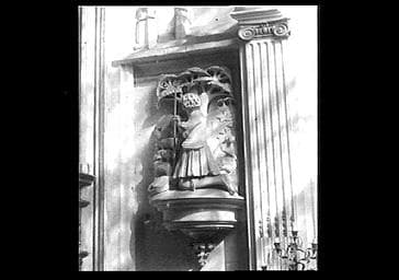 INTERIEUR ; STATUE ; BERGER ; AGENOUILLE ; HAUT-RELIEF ; MOUTON ; ARBRE ; PILASTRE ; CANNELURE ; RENAISSANCE