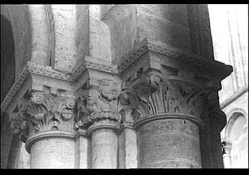 INTERIEUR ; CHAPITEAU ; GROUPE ; RELIEF ; HISTORIE ; VOLUTE ; ORNEMENT GEOMETRIQUE ; ART ROMAN