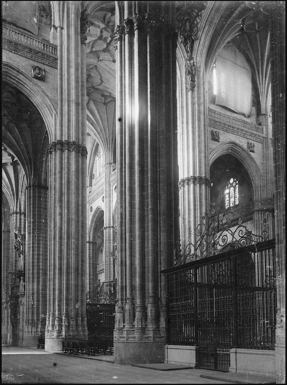 Vue intérieure du déambulatoire et grille du choeur