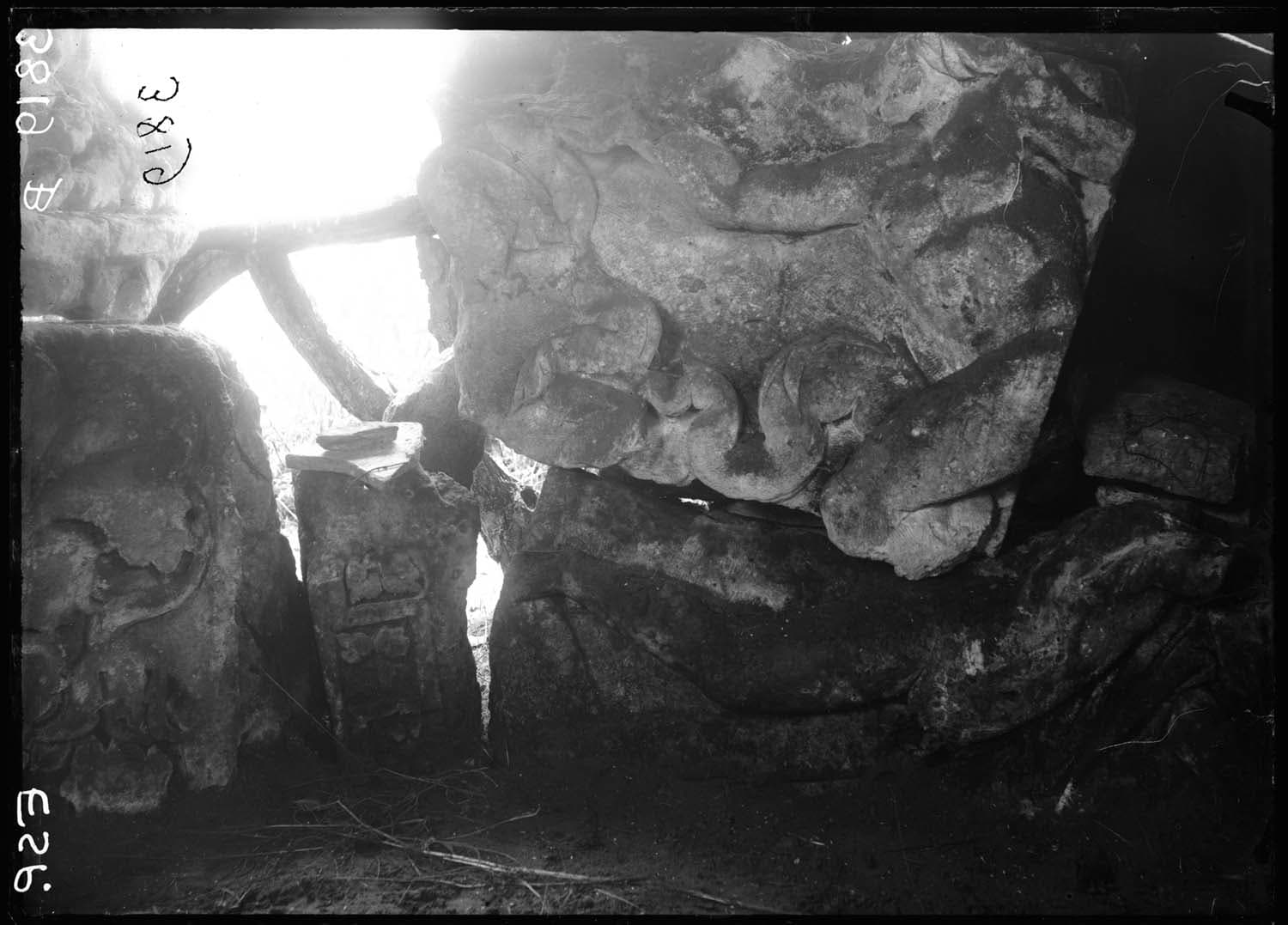 Bloc rectangulaire avec Triton nu et restes d'un autre monstre marin ; Ce bloc et les n° 3810, 3814, 3820-3841, paraissent provenir d'une même frise ; Il a pu s'agir d'un cortège d'Amphitrite ; Mais les Amours chevauchant des monstres marins, les Néréides et les Tritons sont des sujets banaux de l'art antique
