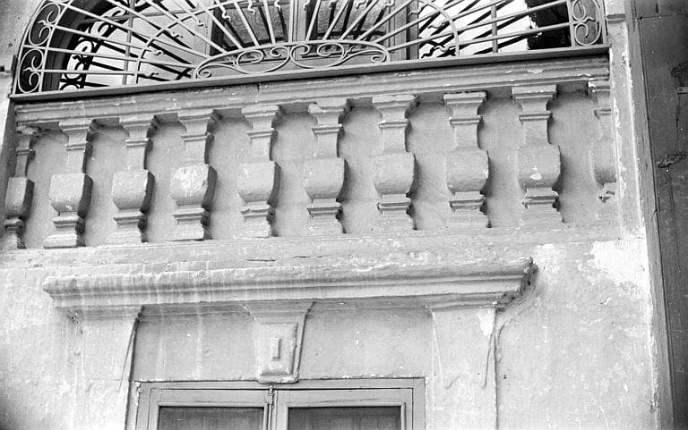 POP | Plateforme ouverte du patrimoineFaçade latérale sous le porche : détail architectural de l'encadrement des fenêtres