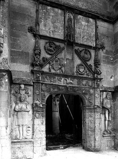 POP | Plateforme ouverte du patrimoinePortail ouest, à droite et à gauche : pierres tumulaires représentant deux personnages de la maison de Laurin