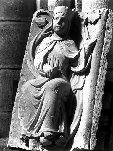 Intérieur, croisillon sud, fragment d'un Arbre de Jessé provenant des voussures du portail primitif (ancien portail central) : reine