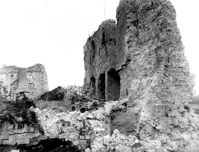 POP | Plateforme ouverte du patrimoineIntérieur, salles et donjon vus vers l'ouest, ruines de la salle des Preuses, éboulement de la tour nord-ouest
