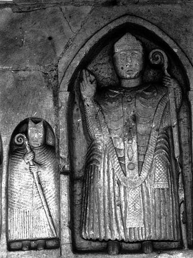 Détail d'un tombeau du cloître, tympan, porte