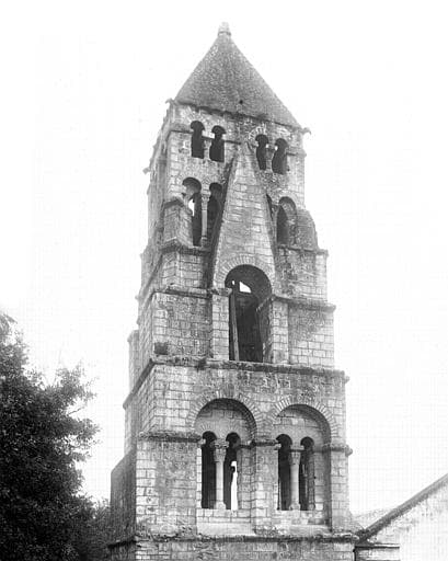 POP | Plateforme ouverte du patrimoineEglise Saint-Pierre et Saint-Sicaire : Partie supérieure du clocher, côté ouest