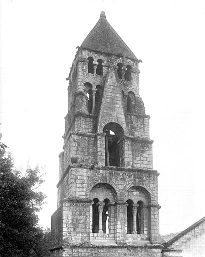 POP | Plateforme ouverte du patrimoineEglise Saint-Pierre et Saint-Sicaire : Partie supérieure du clocher, côté ouest