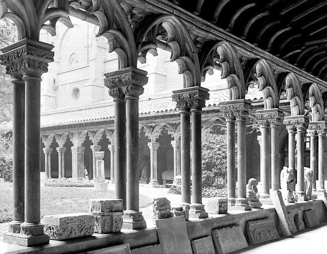 POP | Plateforme ouverte du patrimoineGrand cloître, intérieur d'une galerie, angle nord-ouest : dépôt lapidaire