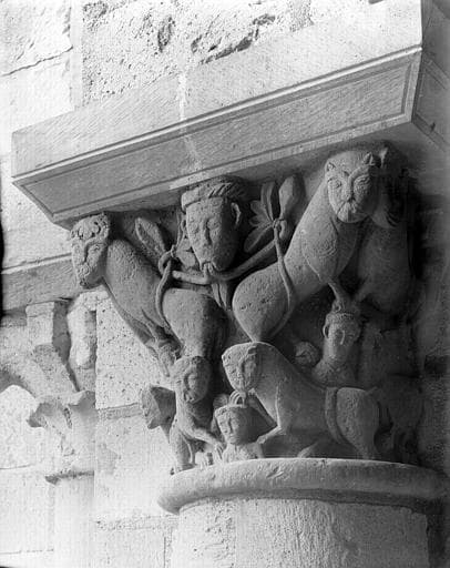 POP | Plateforme ouverte du patrimoinePorche, chapiteau : Têtes humaines et lions (chapiteau 48, pile 13, chapiteau ouest)