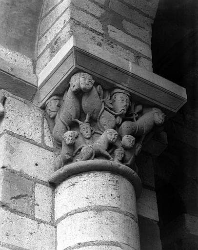 POP | Plateforme ouverte du patrimoinePorche, chapiteau : Têtes humaines et lions (chapiteau 48, pile 13, chapiteau ouest)