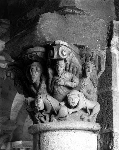 Porche, chapiteau : Hommes et lions (chapiteau 36, pile 10, chapiteau est)