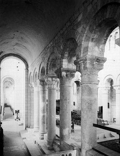 Intérieur, colonnades du choeur et collatéral sud, vue prise du choeur