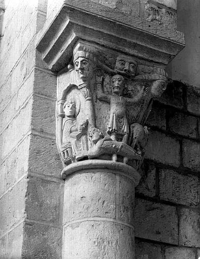 POP | Plateforme ouverte du patrimoineIntérieur, chapiteau du croisillon nord : Zalla et son captif devant saint Benoît