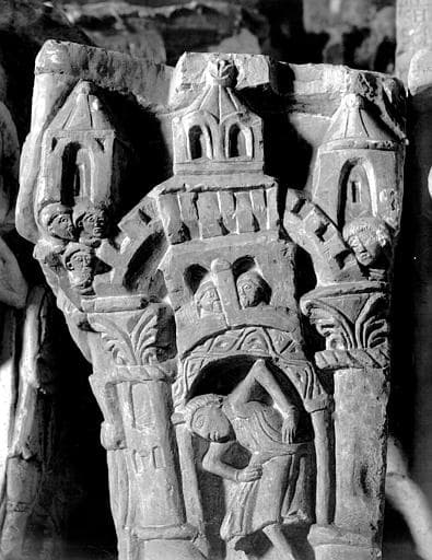 Musée lapidaire, chapiteau provenant des arcatures du choeur : Samson emportant les portes de Gaza