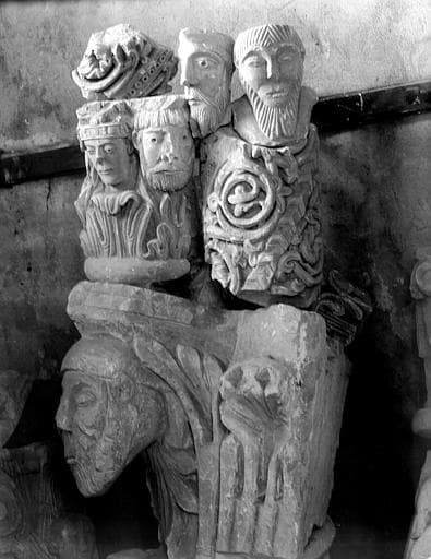 Musée lapidaire, chapiteau provenant des arcatures du choeur : têtes et décor feuillagé
