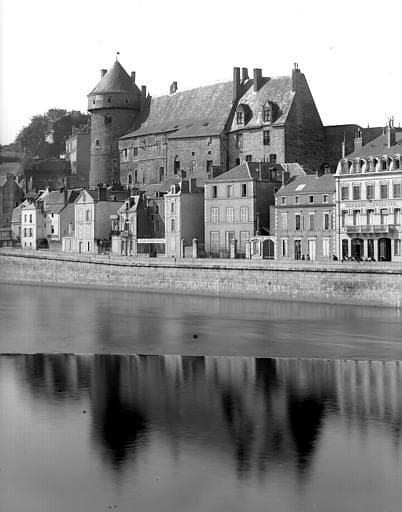 POP | Plateforme ouverte du patrimoineExtérieur, partie de la façade, donjon, quais de la Mayenne au premier plan
