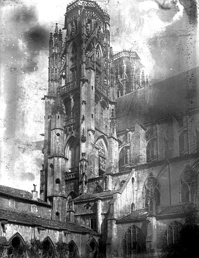 Partie du cloître et tour sud de la cathédrale