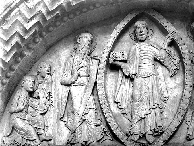Partie gauche d'un tympan : le Christ bénissant l'ordre de Cluny