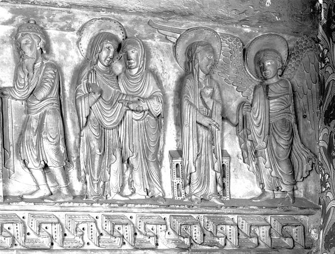 Relief sculpté : La Visitation, l'Annonciation