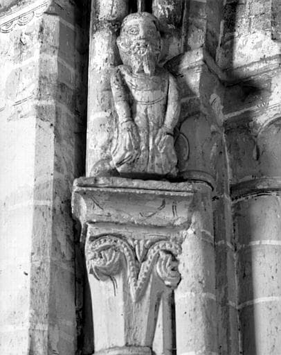 POP | Plateforme ouverte du patrimoineIntérieur, chapiteau du collatéral sud : homme à genoux (traces de peinture), détail