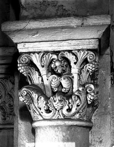 POP | Plateforme ouverte du patrimoineIntérieur, chapiteau nord de l'arc du narthex : raisins dans un décor feuillagé