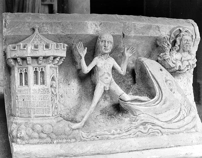 Moulage d'un chapiteau de l'extérieur, tour nord, frise : Jonas avalé par la baleine