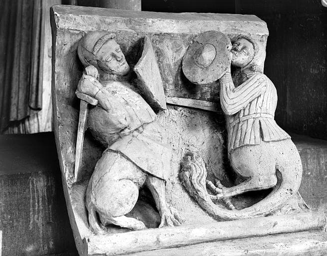 Moulage d'un chapiteau de l'extérieur, tour nord, frise :combat de monstres mi-humain, mi-animal