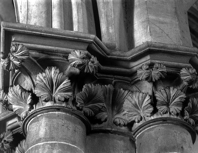 POP | Plateforme ouverte du patrimoineIntérieur, groupe de chapiteaux de la nef à décor feuillagé