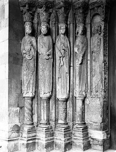 Extérieur, porche sud de la nef, statues-colonnes du piédroit dextre