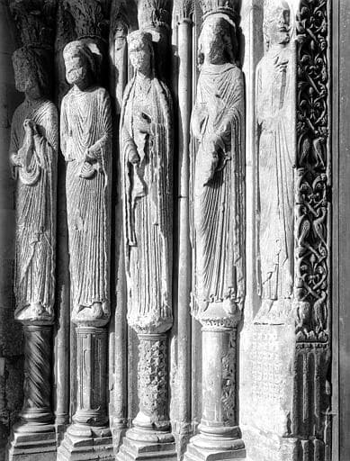 Extérieur, porche sud de la nef, statues-colonnes du piédroit dextre