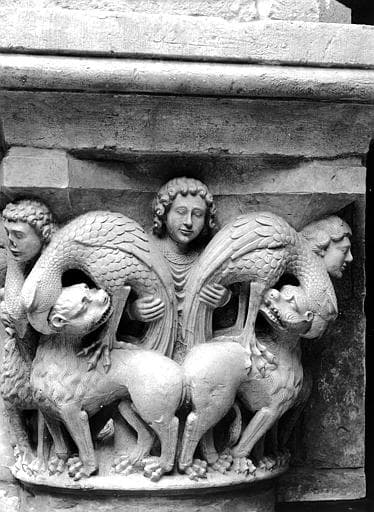 Moulage d'un chapiteau : combats d'animaux adossés et homme