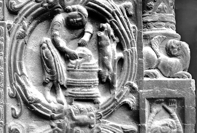 POP | Plateforme ouverte du patrimoineExtérieur, façade ouest, portail côté sud, encadrement dextre de la porte, Occupations des mois : Novembre