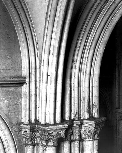 Intérieur, faux narthex, travée ouest de la nef : retombée d'une ogive sur la pile nord-est