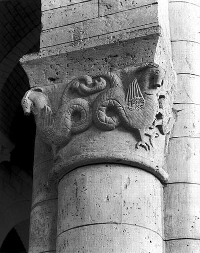 POP | Plateforme ouverte du patrimoineIntérieur, chapiteau engagé de la nef : animaux fabuleux adossés
