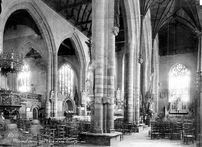 Vue intérieure de la nef et du bas-côté sud, vers le nord-est