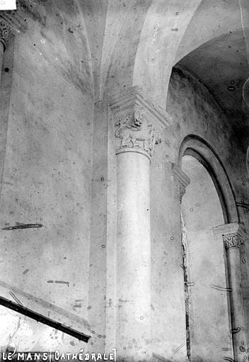 Vue intérieure du bas-côté : Colonne et chapiteau