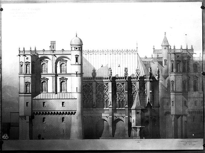 Projet de restauration : Elévation de la façade sud-ouest et de la Sainte-Chapelle. Reproduction d'un projet de restauration