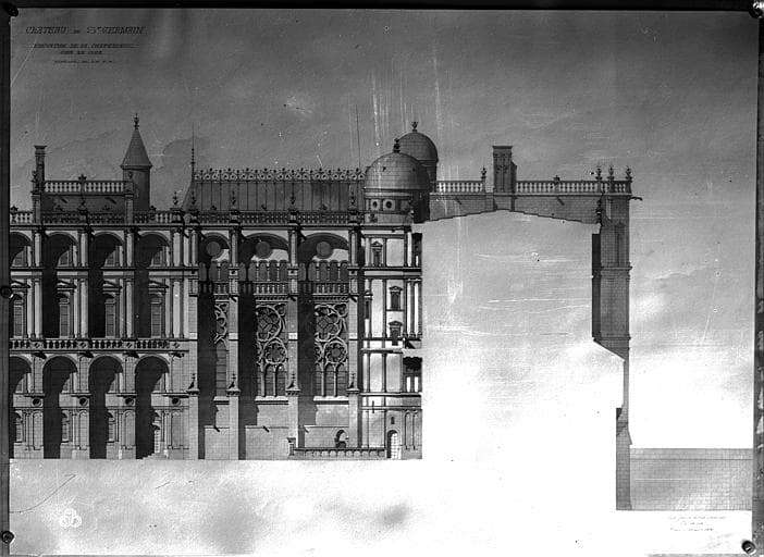 POP | Plateforme ouverte du patrimoineProjet de restauration : Coupe longitudinale de la Sainte-Chapelle, côté cour. Reproduction d'un projet de restauration