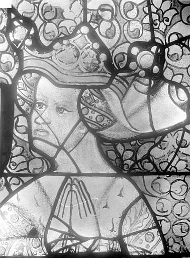 Relevé de panneau de vitrail (détail) : tête d'une reine priant