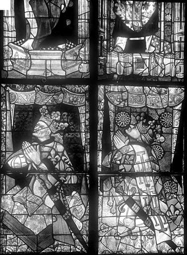 POP | Plateforme ouverte du patrimoineVitrail du transept nord, baie 13, panneaux 21 et 22 : Le roi René ou Louis XIII son frère, et Louis XII roi de Sicile