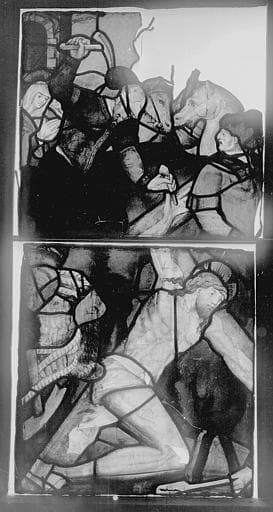 Vitrail, fenêtre D, La Passion, panneau, avant restauration
