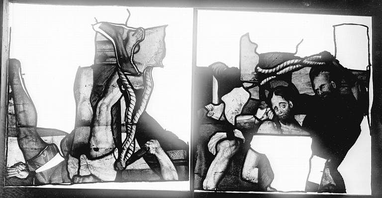 Vitrail, fenêtre D, La Passion, panneau, avant restauration