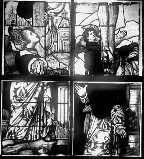Vitrail, Crucifixion, Descente de Croix, panneau, avant restauration